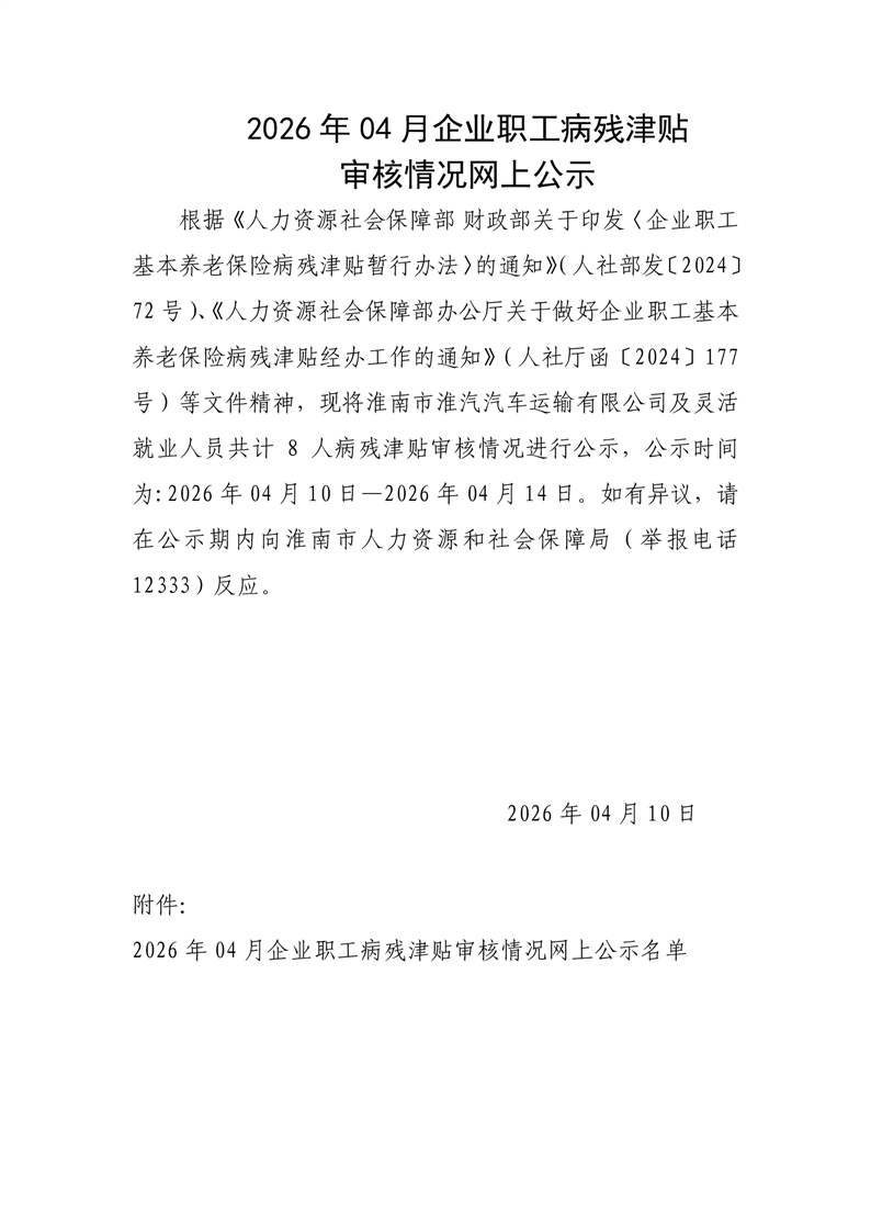 2026年4月企业职工病残津贴审核情况网上公示