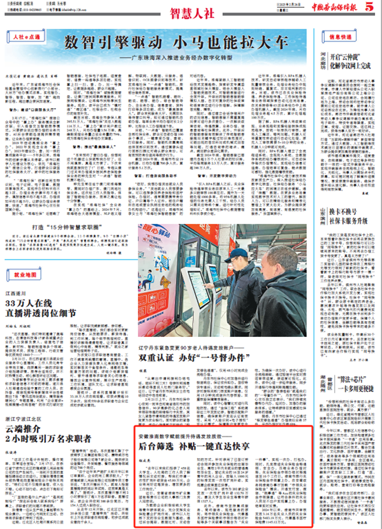 来源:2025年2月26日,中国劳动保障报——《安徽淮南:数字赋能提升待遇发放质效——后台筛选 补贴一键直达快