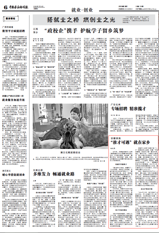 来源:2025年7月18日,中国劳动保障报——《安徽淮南:“淮才可遇”就在家乡》