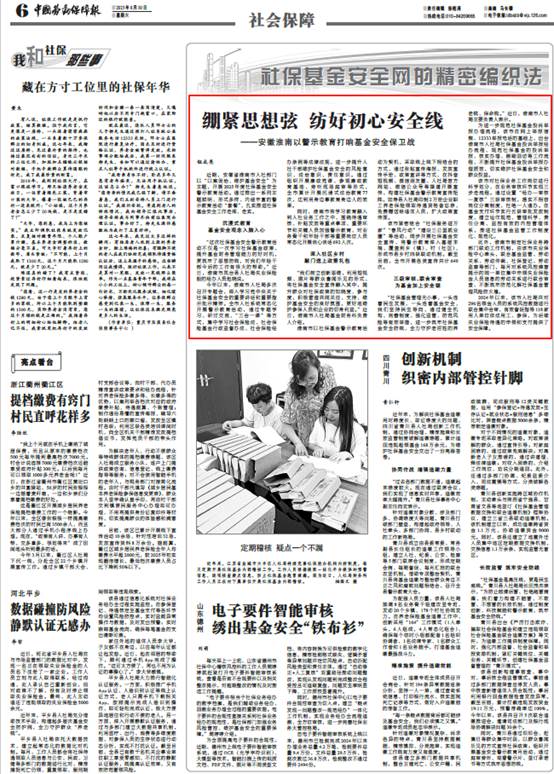 2025年6月14日,中国劳动保障报——《奏响“幸福三重奏”——安徽淮南推动社保扩面提质、服务升级,守牢基金安全》