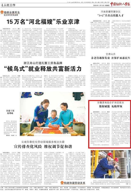 来源:2025年11月13日,中国组织人事报——《安徽淮南助企扩岗促就业—数据赋能 免跑即领》