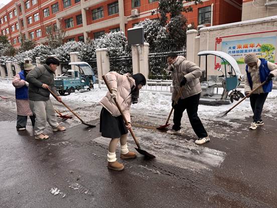 活动中,志愿者们手持铁锹、雪铲等工具,对朝阳社区主干道重点区域的积雪和薄冰进行全面清理。为居民开辟出安全、通畅的出行道路。下一步,中心将持续深化与结对社区的共建联动,聚焦群众需求开展各类志愿服务,共同营造安全、和谐、宜居的社区环境。