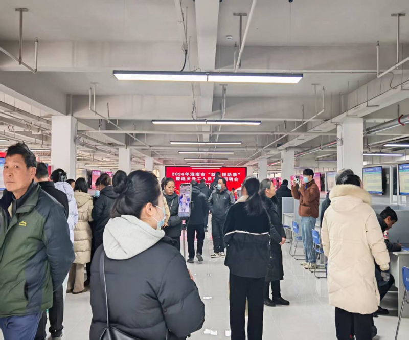 为进一步促进返乡人员留淮就业,扎实做好返乡人员就业服务,2026年1月24日上午,“就业援助季”暨返乡务工人员专场招聘会在淮南市人力资源市场顺利举办。